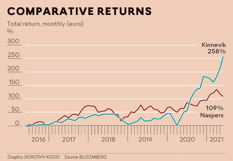 The result? Kinnevik has trounced Naspers over five years, returning 258% for shareholders versus 109% for Naspers. Kinnevik even outperformed Tencent’s remarkable 229% return over that period.