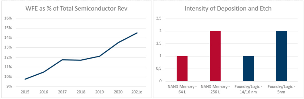 Chart 3: Capital Intensity of WFE Market & Growing Importance of Deposition and Etch