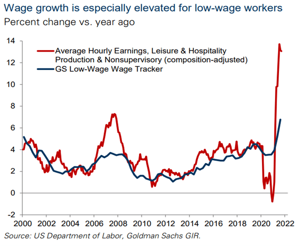 2. While wages, especially in the US, are rising, increases are heavily concentrated in disrupted segments (i.e., transport and warehousing, travel-related). In other areas we see no such increases. In Europe and Asia, we see no evidence of wage growth.