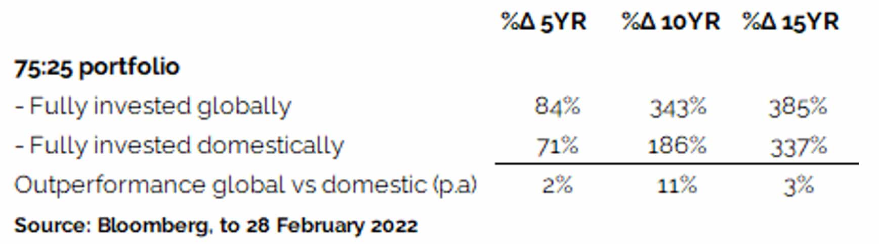Savers in the private sector find themselves in a very different position to government employees. Government employees are typically members of the Government Employees Pension Fund (GEPF) which is a defined benefit scheme. As such, their retirement benefits (plus an adjustment which is at least equal to 75% of the inflation rate per annum) are underwritten by the fiscus. Private savers are typically members of defined contribution schemes where they bear the full investment risk associated with their retirement savings. They thus bear the costs of over or under-exposure to South Africa. As is evident in the table below, a 75:25 portfolio which was fully invested globally would have outperformed one which was fully invested domestically over 5, 10, 15 years. Less aggressive global portfolios would have performed less well relative to their domestic counterparts because we have seen the lowest interest rates for a generation post the Global Financial Crisis. This looks set to change.