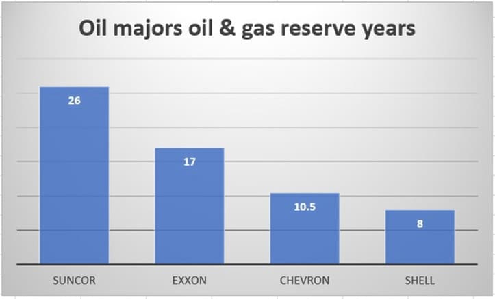 The first aspect that makes Suncor valuable is it’s long reserve life. As the chart below shows, the reserve life of Suncor far exceeds that of its well-known peers. This is an enormous advantage in a time when exploration and identification of reserves is becoming more costly and diffi cult . A high reserve life also provides meaningful visibility to the Company’s discounted cash flows.