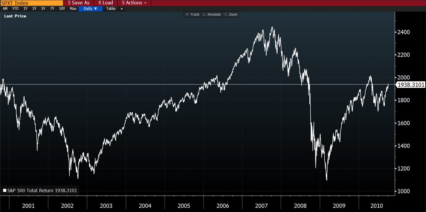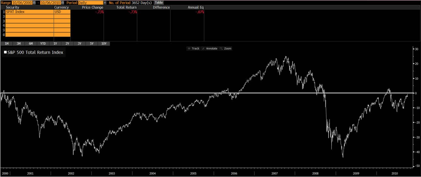 Chart: S&P 500 from October 6 2000 to October 6 2010