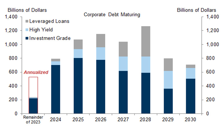 Chart 3: Size of corporate debt maturing until 2030 (in USD billions), Goldman Sachs