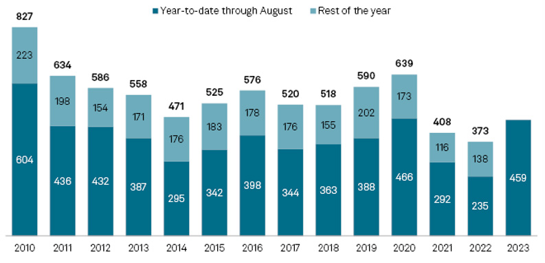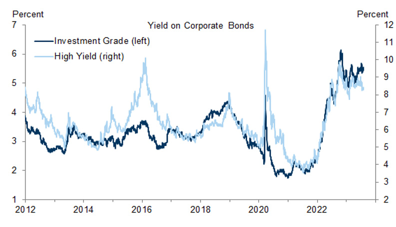 Chart 4: Interest rates on corporate debt from 2012 to August 2023, Goldman Sachs