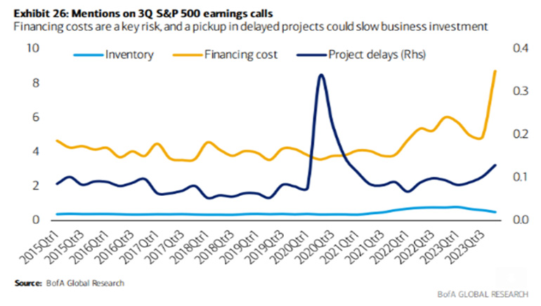 We are also now seeing anecdotal evidence of further debt issues arising on third-quarter earnings calls with management of S&P500 companies, as evident in the graph below.