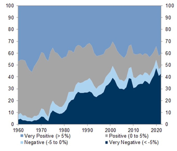 Chart 6: Share of all publicly listed firms by profit margin (in %), Goldman Sachs