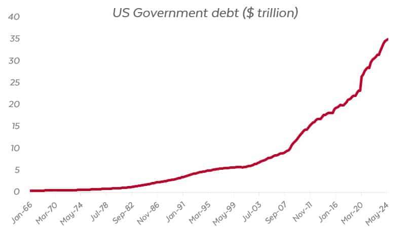 The ongoing global conflicts, coupled with US debt breaching $35 trillion, meant investors still sought out safety in gold. The metal hit several record highs during the month, gaining 3.8% and closing above $2,500 per ounce. This means one standard bar of gold is now worth more than $1 million.