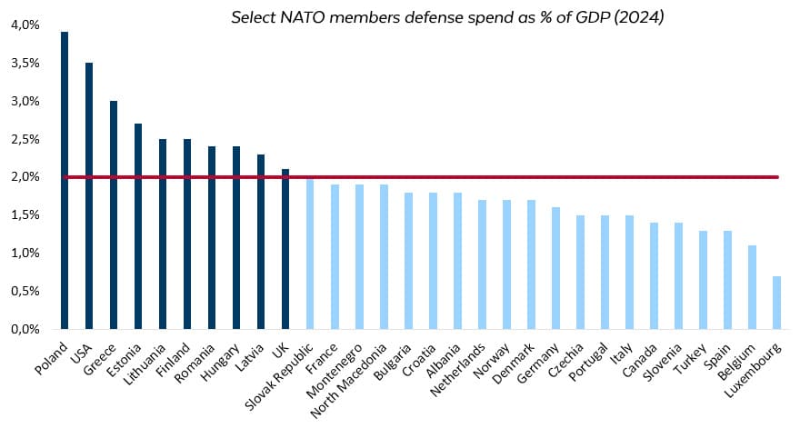 At month-end, a heated meeting between Trump and Ukraine’s Zelensky laid bare the deterioration of their relationship, and odds are now increasing that the US will withdraw all support for the Ukrainian war effort. The EU will need to step up to try and fill the void, as they face a number of tough questions regarding security over the coming months.